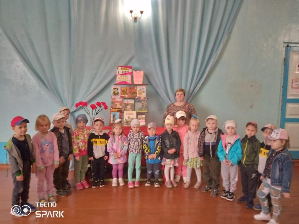 Ребята узнали много интересного о событиях Великой Отечественной Войны, о подвиге русского солдата, о мужестве прадедов. Дети с большим интересом слушали, задавали вопросы, рассматривали выставку книг «И память о войне, нам книга оживит».