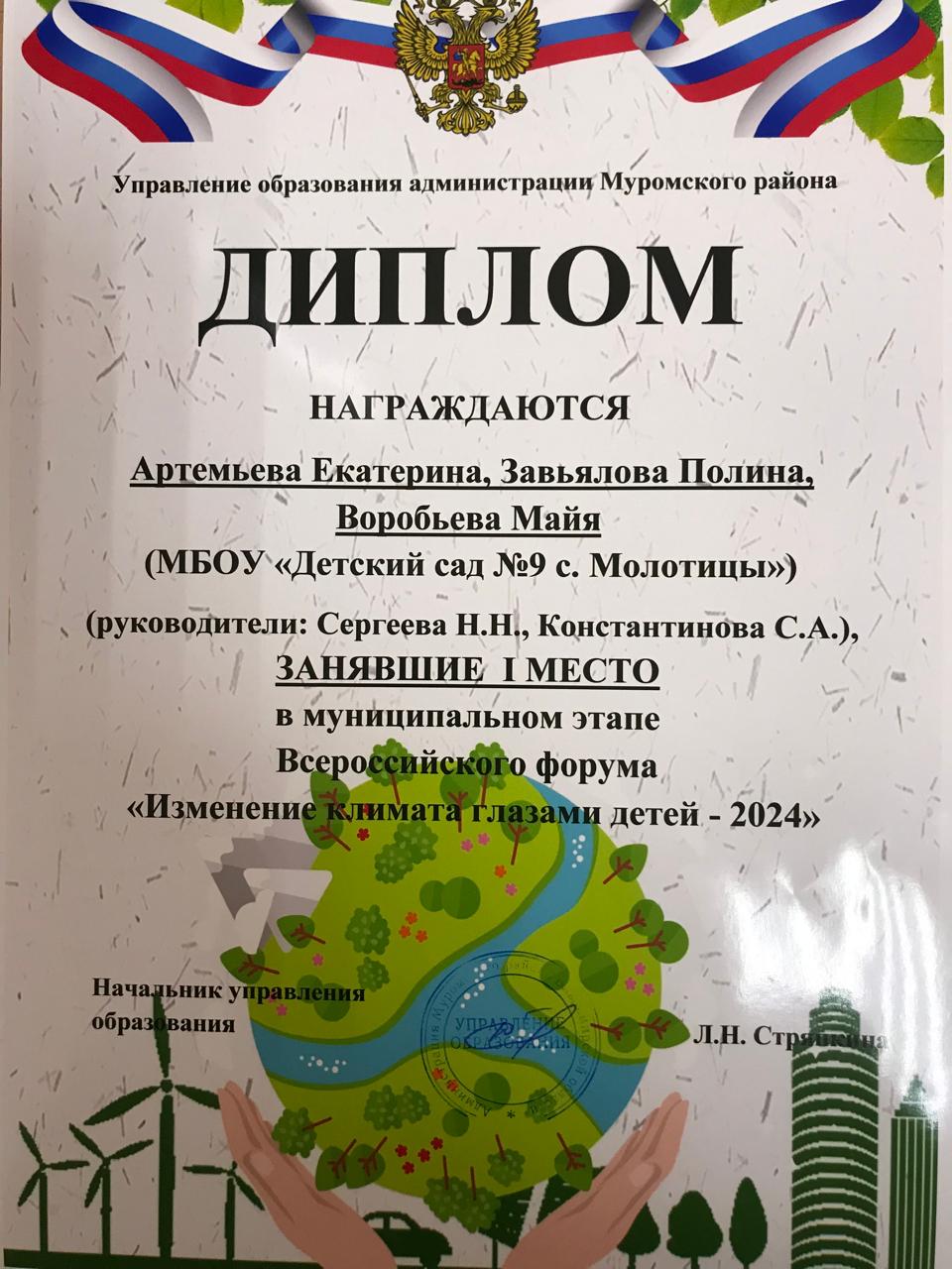 В муниципальном этапе III Международного детского экологического форума «Изменение климата глазами детей-2024» наши педагоги и дети приняли участие и заняли 1 место в Номинации «Экомода».