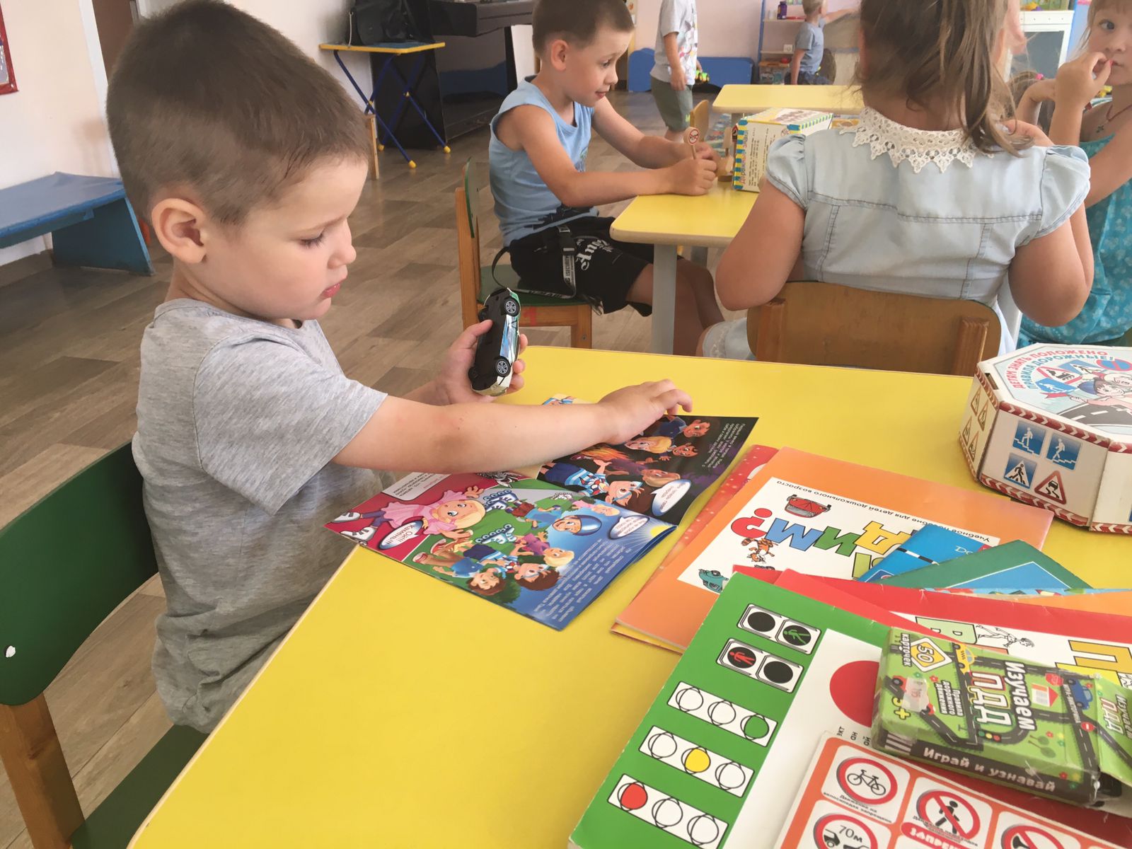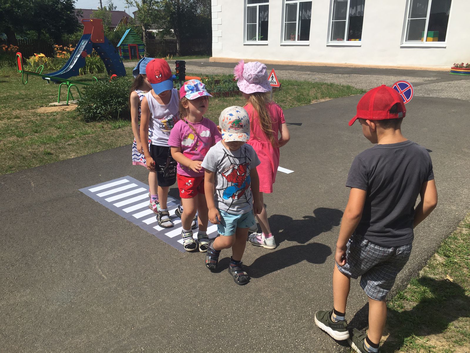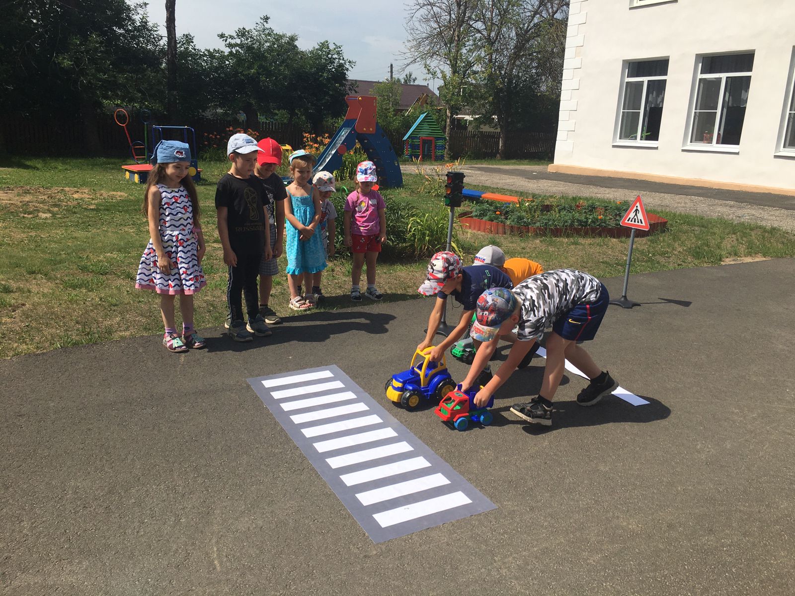 В течение недели в детском саду с детьми были проведены беседы о правилах дорожного движения «Правила поведения на дороге, в транспорте, на улице», «Чтобы не случилось беды», «Безопасность на улице», «Дорожные знаки», «Виды транспорта», «Детское кресло», «Езда на велосипеде, роликах, самокатах». Организована выставка книг по данной тематике, рассмотрены и проанализированы различные ситуации.