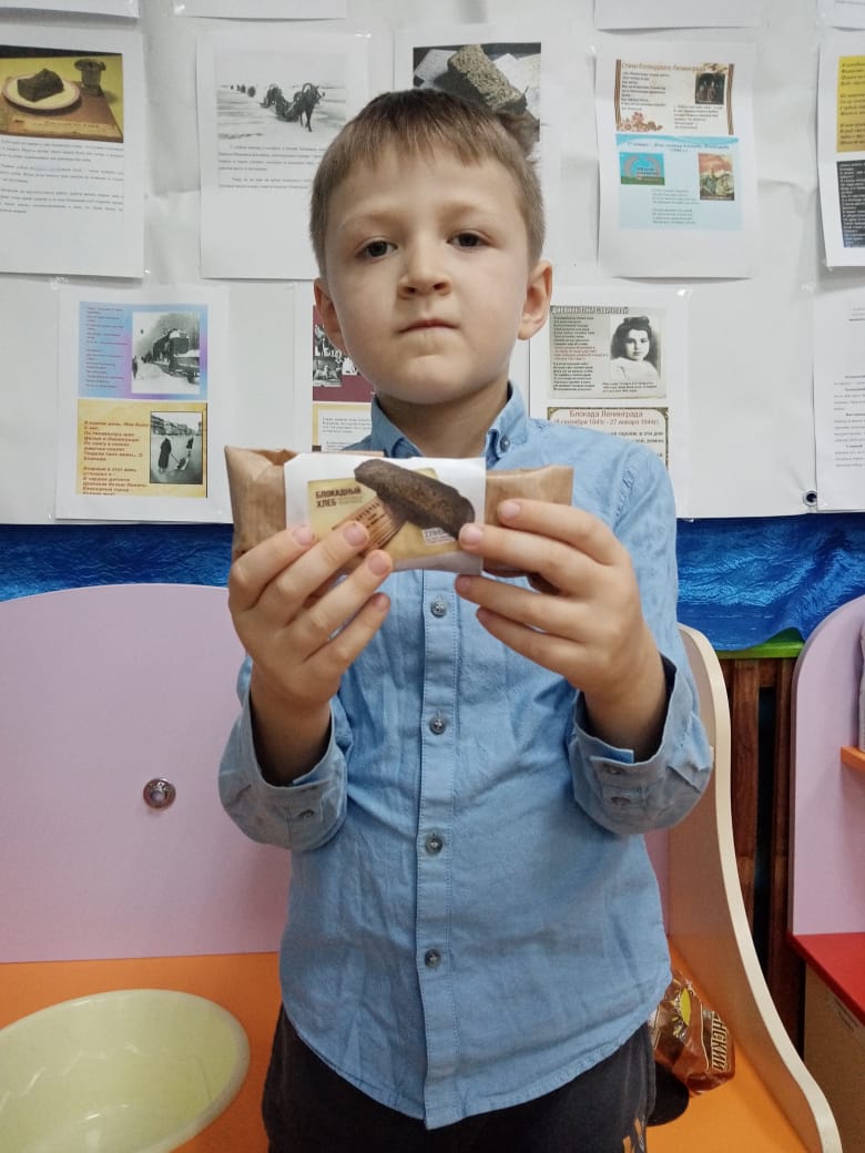 В нашем детском саду прошла акция "Блокадный хлеб".Педагоги рассказали детям о блокаде Ленинграда, о дороге жизни, о том, как жили и выживали люди в это страшное время, рассказали о хлебе, о его роли в жизни ленинградцев. Дети наглядно увидели кусочек хлеба, который на протяжении многих блокадных дней, был для ленинградцев единственным источником жизни и надежды.