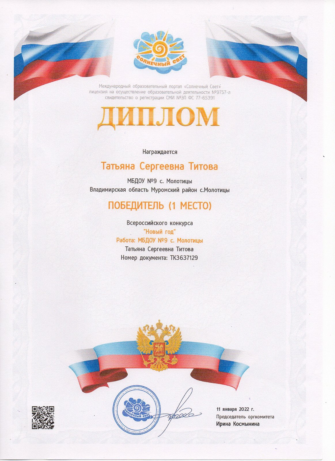 Адрес: 602213, Россия, Владимирская обл., район Муромский, село Молотицы, ул.Гагарина, д.25